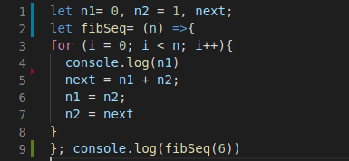 This is a For Loop that will count up to the “nth” term in the Fibonacci Sequence, where in the function argument, “n” is the term we are looking for. In the example, we passed 6 as being the 6th term we want, which gives us the following message in the console: